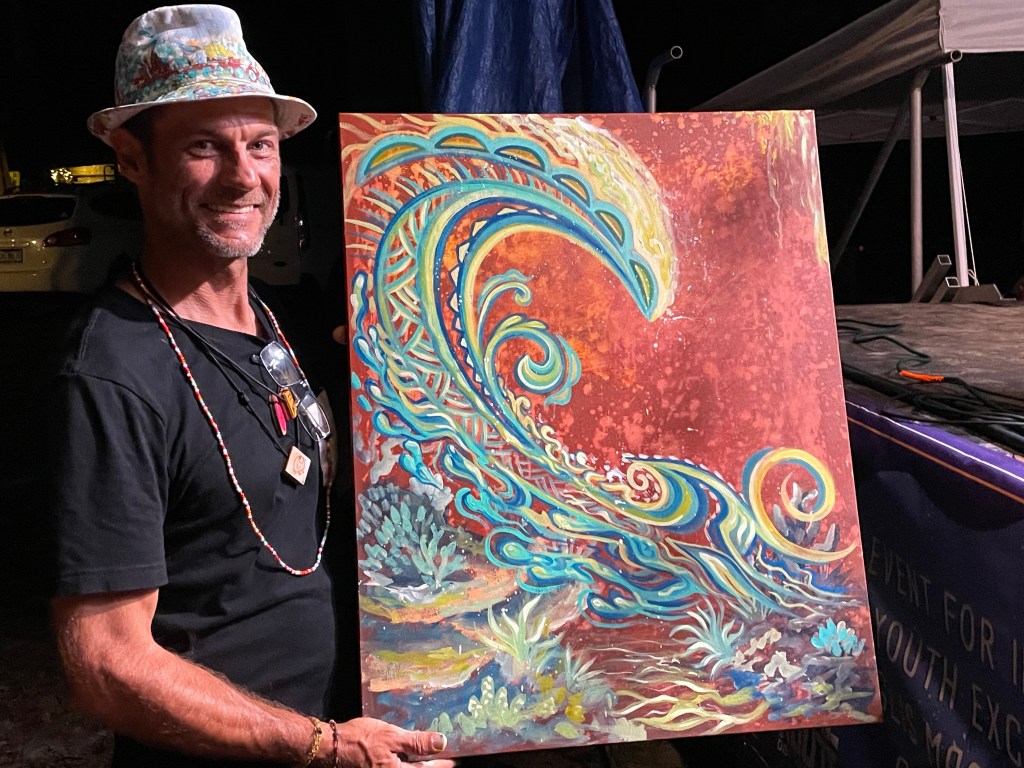 Chad Ruis aka ‘Cheeta’ shows off his creation; an homage to the coral reefs in Costa Rica. Photo By Brendan McGinley