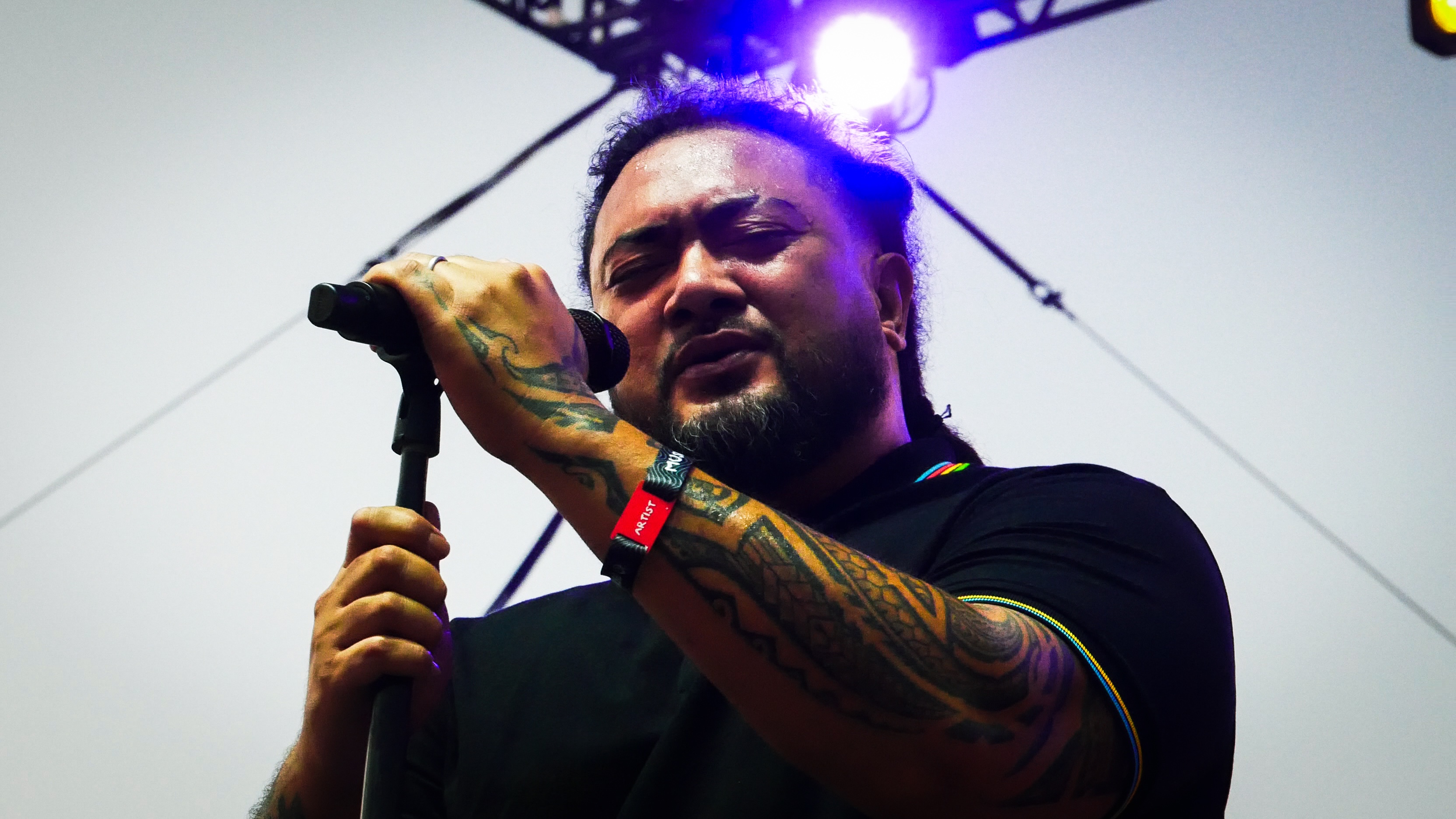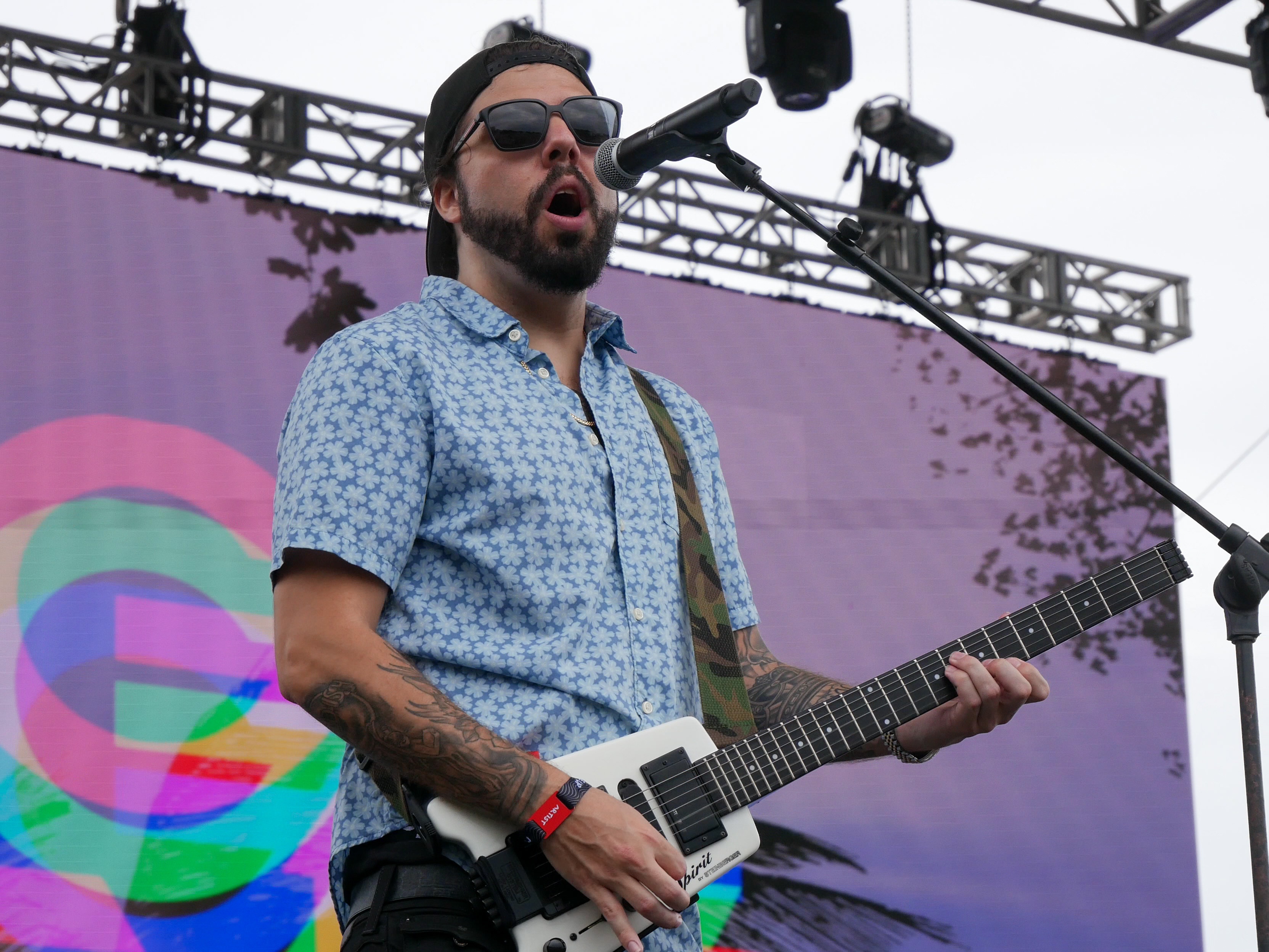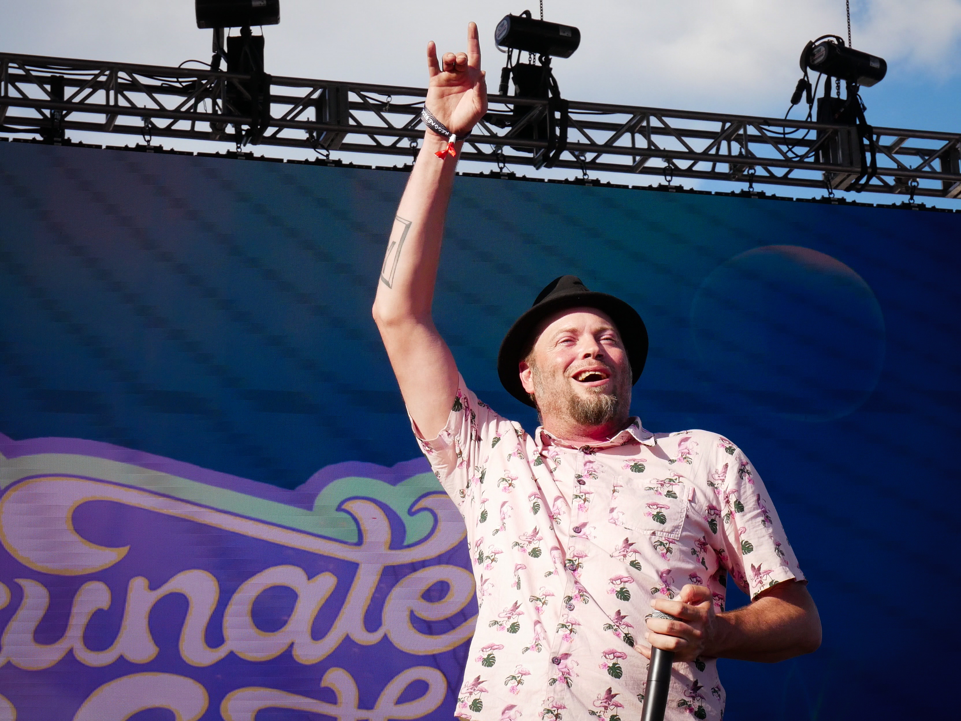 Corey Draskovich of Fortunate Youth gazing out at the beautiful ocean of people at Reggae Rise Up Florida Photo By Brendan McGinley