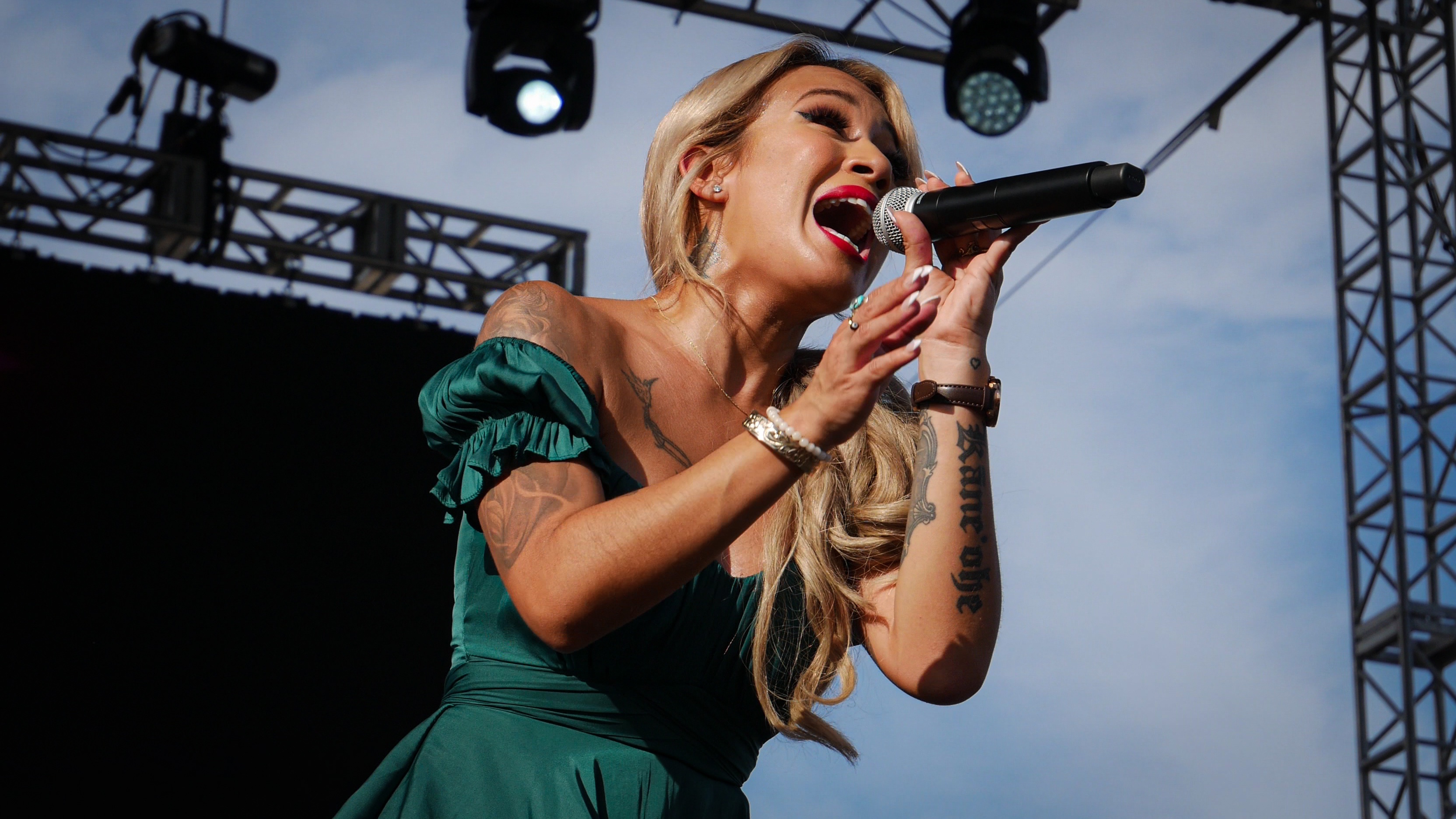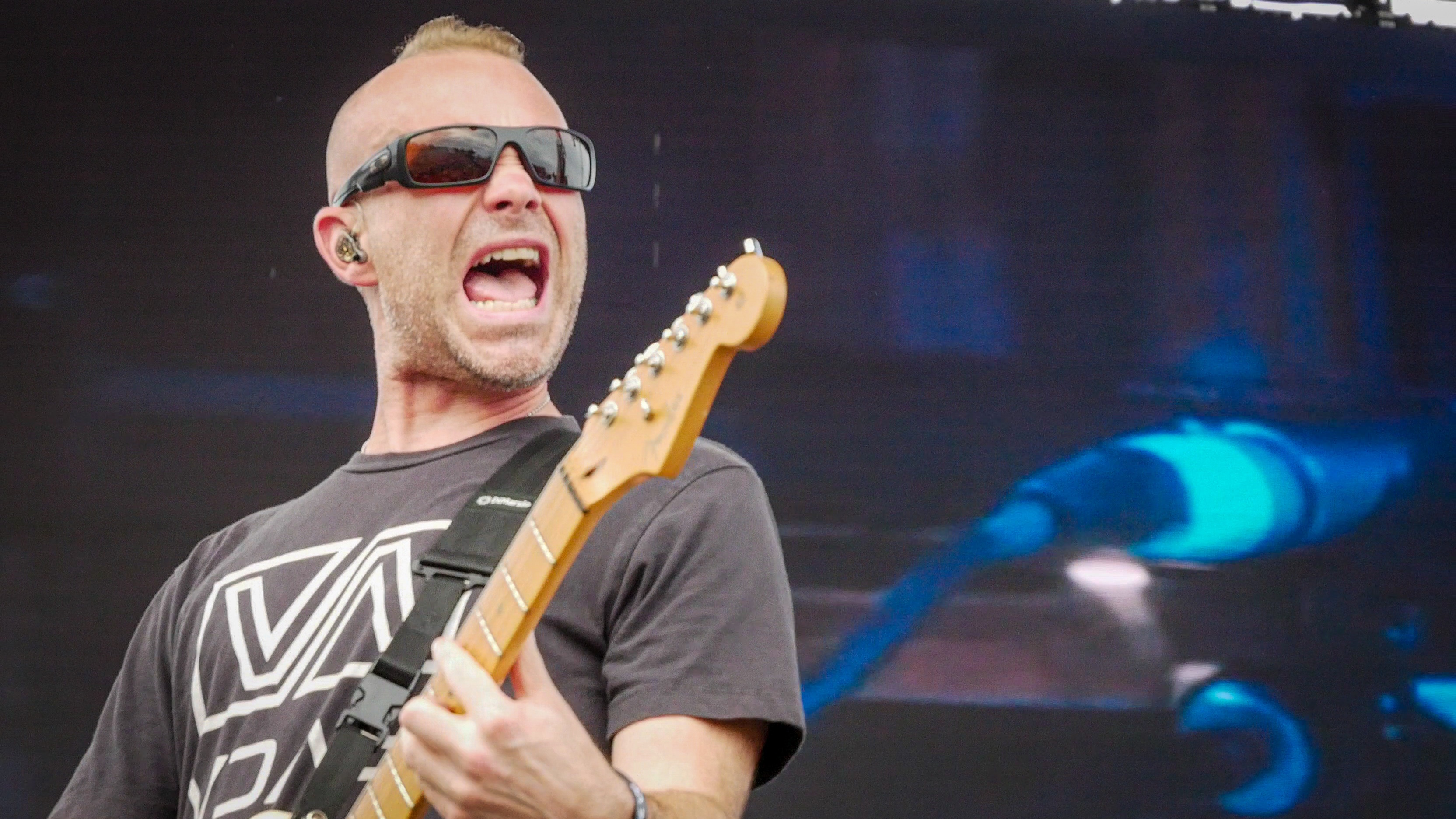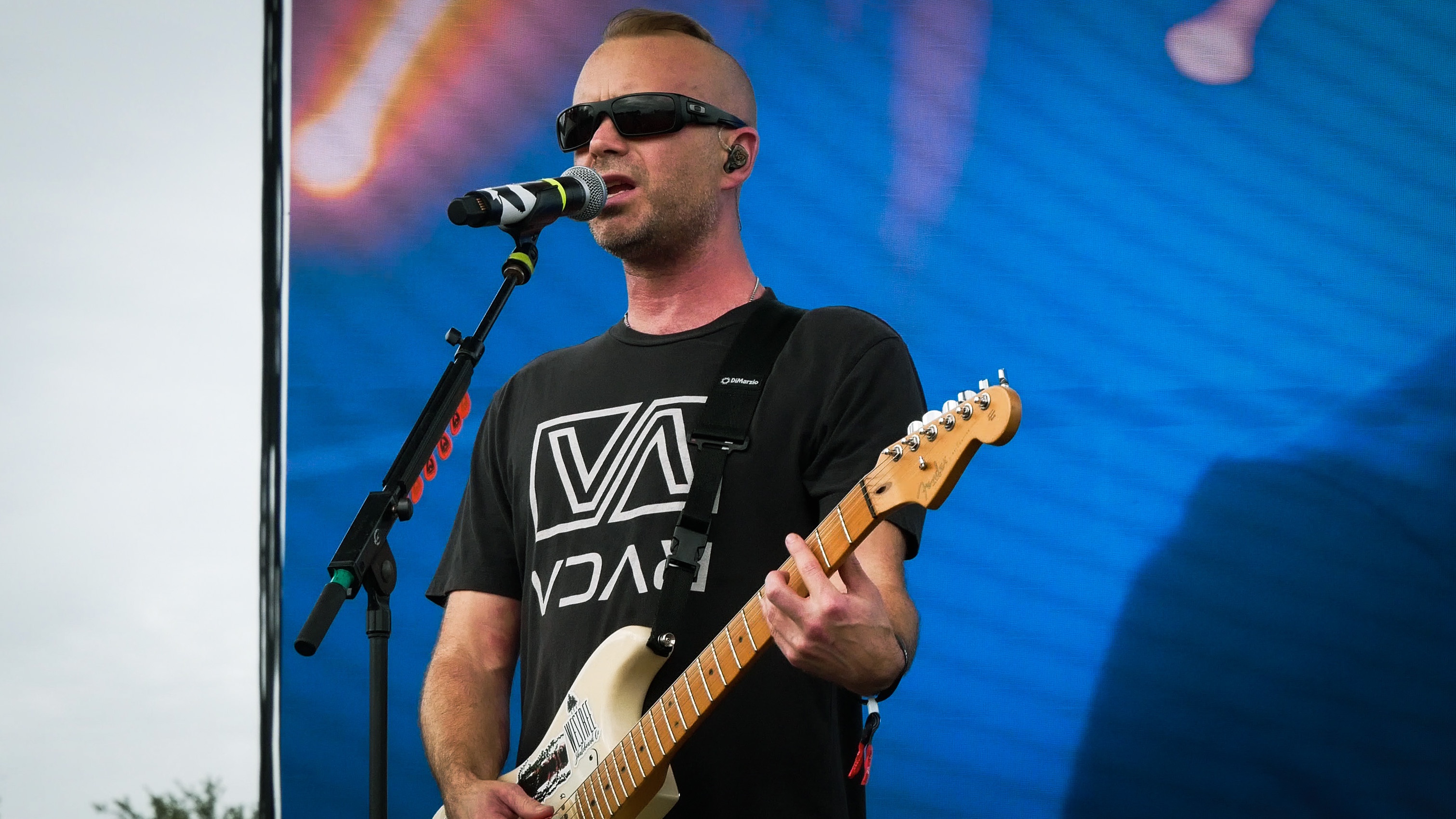 Corey Draskovich of Fortunate Youth gazing out at the beautiful ocean of people at Reggae Rise Up Florida Photo By Brendan McGinley